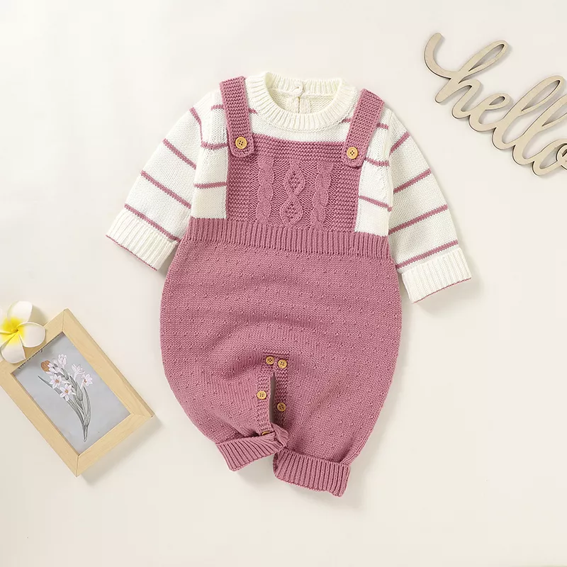 Cozy Knitted Baby Romper – Long Sleeve Striped Jumpsuit for Winter (0-18M)