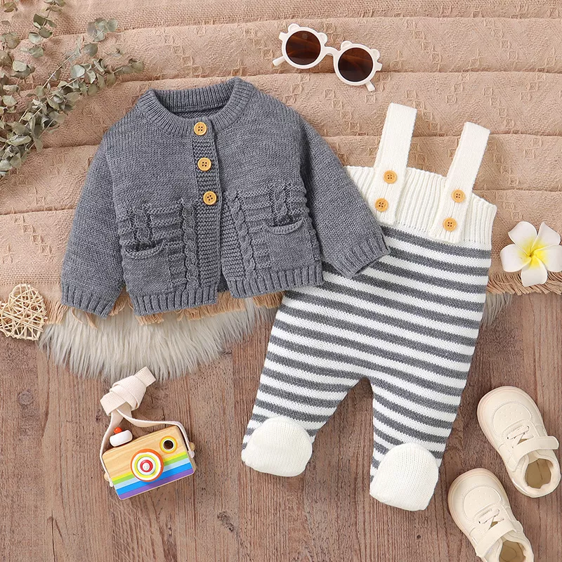 Autumn Knitted Baby Romper – Cozy Striped Long Sleeve Jumpsuit (0-9M)