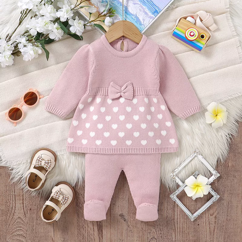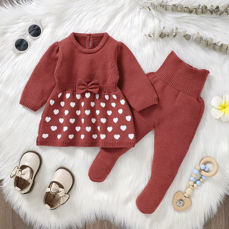 Knit Baby Girl Outfit – Cozy Sweater Dress & Pants Set 0-9M