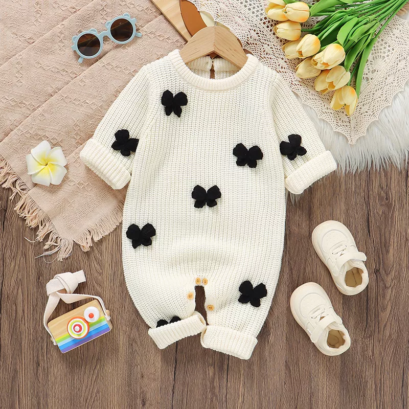 Knitted Baby Romper Tie Jumpsuit – Cozy Long Sleeve Outfit